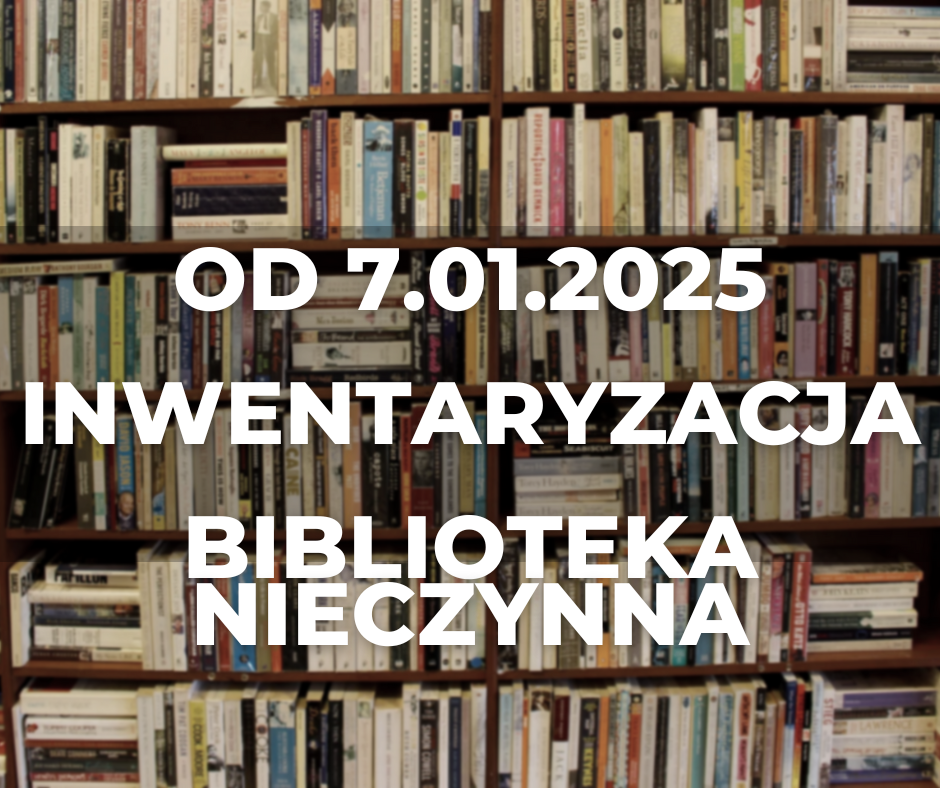 W związku z inwentaryzacją księgozbioru bibliotecznego biblioteka będzie nieczynna od dnia 7 stycznia 2025 do dnia zakończenia inwentaryzacji. Nie będzie można w tym czasie wypożyczać książek- za niedogodności przepraszamy