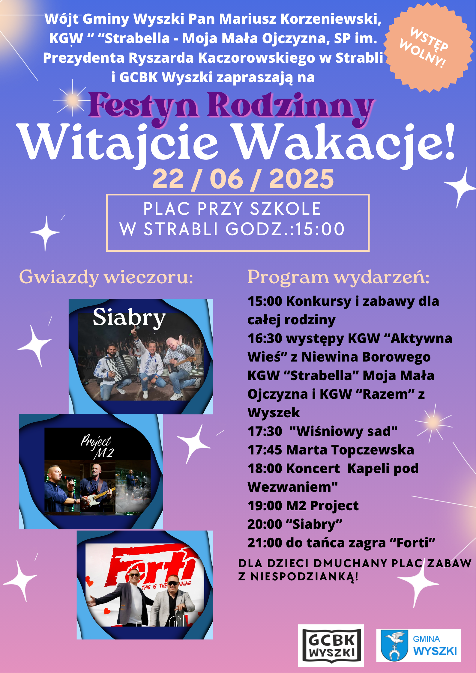Zapraszamy serdecznie 3 lipca 20022 czyli w najbliższą niedzielę na rodzinny festyn w Strabli! Na dzieci i dorosłych czekać będzie mnóstwo atrakcji i konkursów z nagrodami, występy zespołów oraz dmuchany plac zabaw za darmo. To wszystko i jeszcze więcej na placu przy Szkole Podstawowej w Strabli.