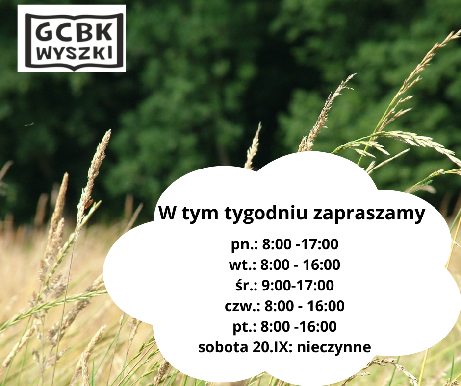 Zapraszamy do korzystania z naszej oferty! Poniżej godziny pracy GCBK Wyszki