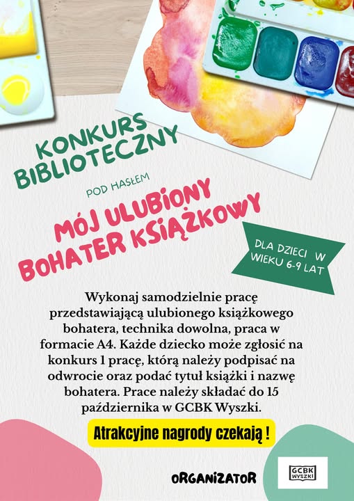 Zapraszamy młodzież od 4 klasy szkoły podstawowej do naszego ogniska plastycznego. Zajęcia poprowadzi instruktor sztuk plastycznych, pierwsze spotkanie 5 maja 2025 o godz. 17:00 w GCBK Wyszki. Zapisy w GCBK i pod nr. telefonu 695 383 111