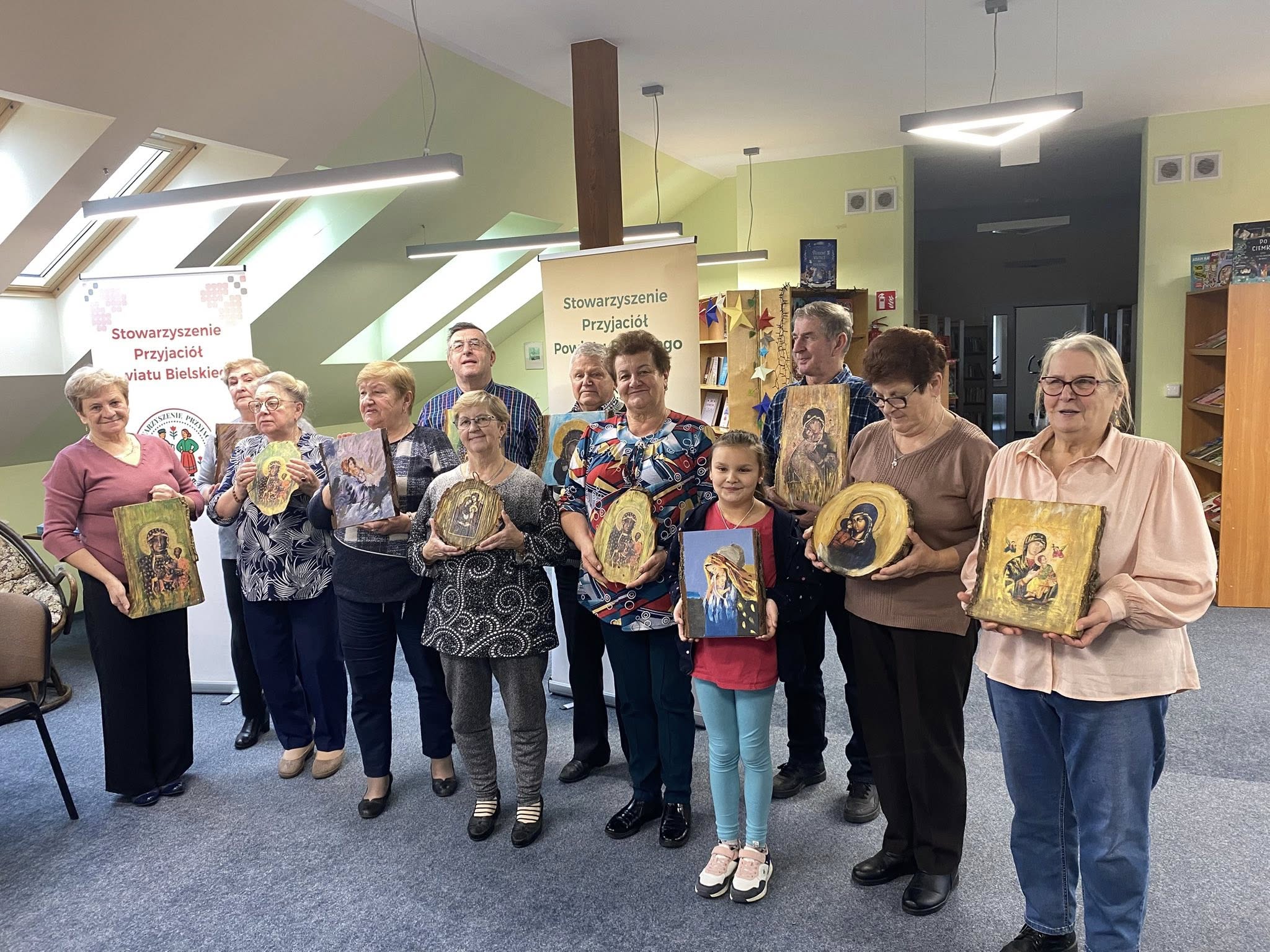 W listopadzie nasi seniorzy z KGW Klub Seniora „Razem” mieli przyjemność wziąć udział w warsztatach tworzenia ikon- na starych deskach, z pomocą obrazków nadrukowanych na papier ryżowy, farbom i dużej dozie kreatywności powstały piękne obrazy.