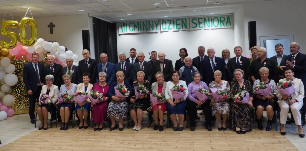 Uroczystość wręczenia medali jubilatom którzy świętowali 50-lecie małżeństwa w 2024 roku. Uroczysty obiad, część artystyczna, konkursy i zabawy a także tańce i śpiewy – jaki cudowny dzień pełen wzruszeń, radości i dumy!!